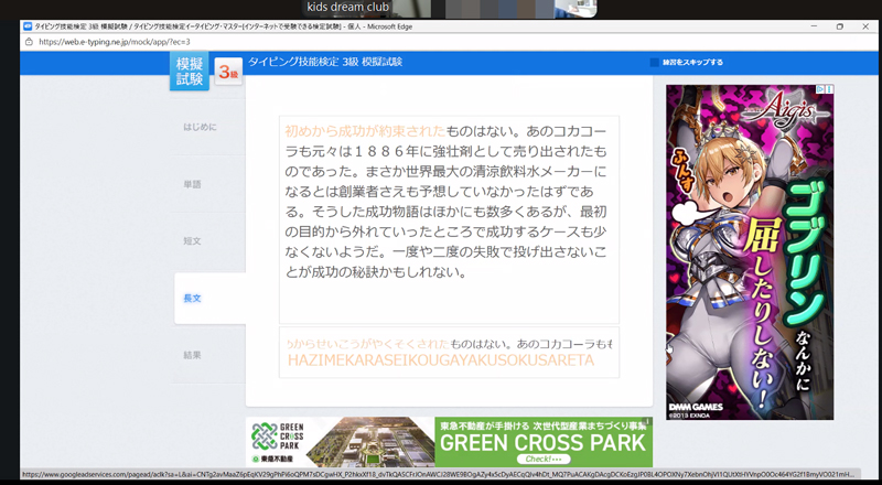 夕方からはオンラインレッスンを1件行いました。レッスン生のタイピング検定3級も合格レベルに達成したので、これからも継続して練習していけば、3級本番でも大丈夫なのかなと感じています。