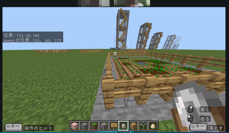その後、マイクラプログラミングについては、いままで作成した作成物を使って、町づくりの課題に取り組んでもらいました。次回のオンラインレッスンである程度、町づくりが出来上がるかなと感じています。