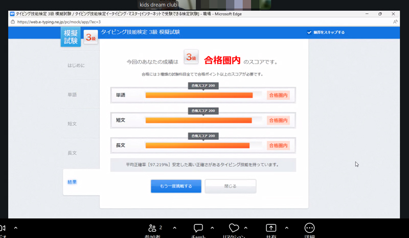 夕方からはオンラインレッスン(マイクラ)を行いました。タイピング3級も安定してきたので、2級でもいいところまで行けそうな予感はしています。