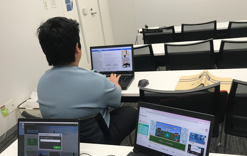 運動教室の後は、プログラミング教室を行いました。タイピングの癖が少しあったので、少しアドバイスしました。その点を修正したら、もう少し速く打てるようになるのではと感じています。