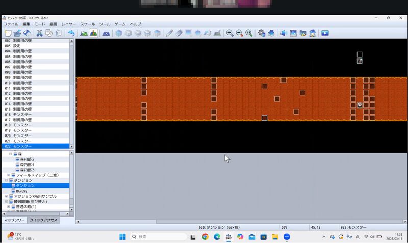 物語システムについては、ミニゲームを作成してもらいましたが、キャラクターと岩との当たり判定が上手く行っていなかったので、持ち帰り案件となってしまいました。次のレッスンまでに私が簡易版のミニゲームを作ってから、レッスン生にこうすればいいんじゃない?という提案になるのかなと考えています。